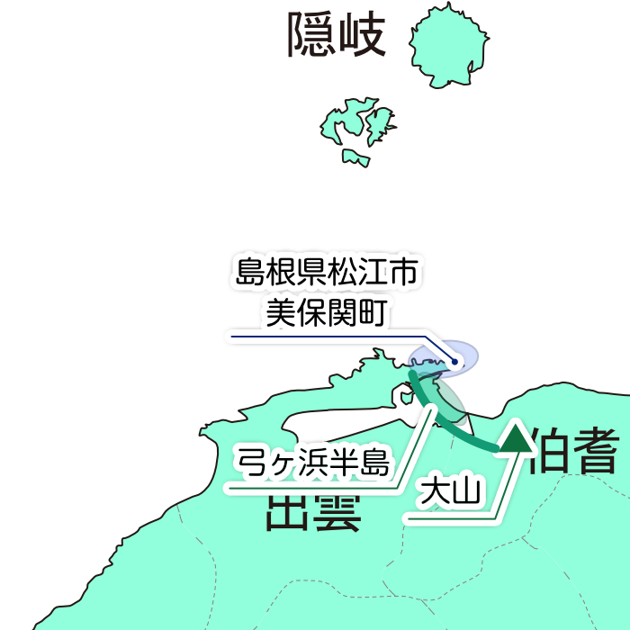 「美穂の埼」は、島根半島の東端「島根県松江市美保関町美保関」と比定される。