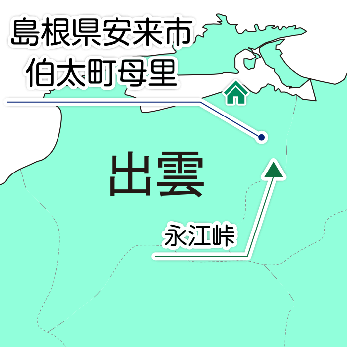 当時の出雲国と伯耆国の国境の山を指し、現在の「島根県安来市伯太町下小竹」および「鳥取県日南町印賀」付近の「鷹入山」に「永江峠」との遺称地がある。