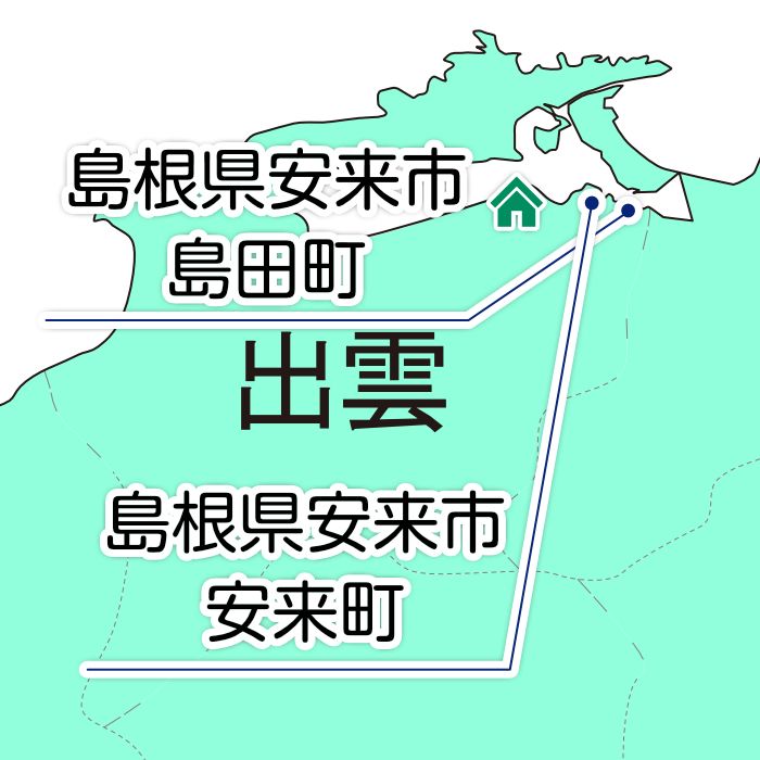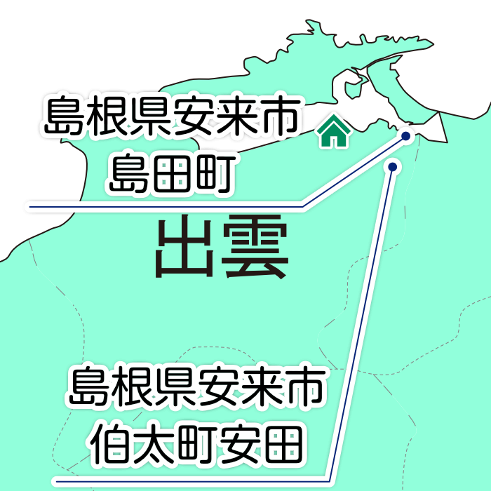 現在の「島根県安来市安来町」から「島根県安来市島田町」の付近と同定される。